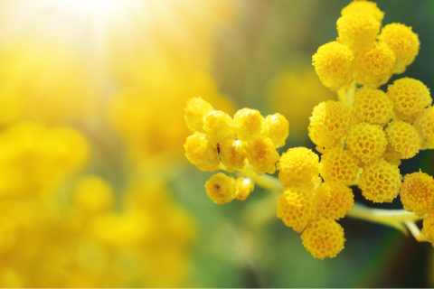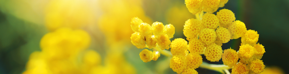 L'helichryse italienne ou immortelle fait partie de la famille des astéraceae. C'est un petit buisson qui mesure environ 50 cm de haut et qui pousse dans les régions méditerranéennes, en Corse et en Provence. La variété angustifolium pousse aussi dans les balkans. Elle pousse sur des sols rocailleux et secs. Ces fleurs sont d'un jaune vif qui se ternit jamais d'où son nom d'immortelle, car on dirait qu'elle ne fane jamais. Ses feuilles et ses tiges sont grises pâles. C'est une plante fragile, qui contient un peu d'essence dans ses capitules de fleurs. Son huile essentielle est très précieuse et chère, car sa composition est très rare et son rendement très faible. Son odeur est forte et chaude.