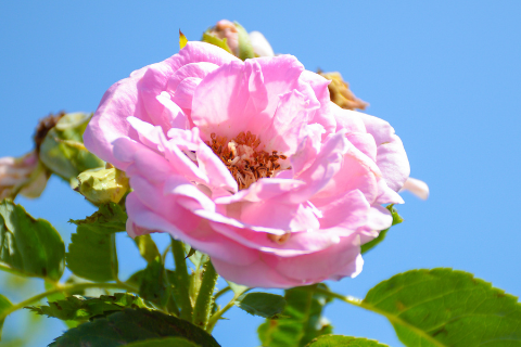 Le Rosier de Damas est un arbuste qui peut atteindre 2,5 m de haut qui fleurit à la fin du printemps : en mai et juin. Les fleurs sont particulièrement parfumées. Il faut environ 4 tonnes de pétales de rose pour donner 1 litre de cette huile très exceptionnelle et précieuse. Cette rose est surtout cultivée en Bulgarie et en Turquie. C'est l'espèce de roses qui est très utilisée pour la parfumerie et la beauté.
